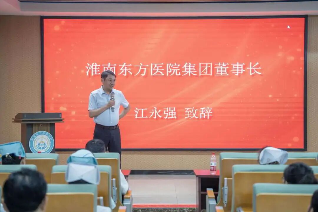 大會在莊重而熱烈的氛圍中拉開帷幕。淮南東方醫(yī)院集團董事長江永強首先為大會致辭。他代表集團黨委、董事會,向全體教師致以節(jié)日的問候和崇高的敬意,并對受到表彰的教師表示熱烈祝賀。江永強董事長在講話中深情回顧了過去一年醫(yī)院在醫(yī)、教、研各方面取得的顯著成績,特別強調(diào)了教師在醫(yī)學(xué)傳承與創(chuàng)新中的重要作用。他指出,教師不僅是知識的傳遞者,更是靈魂的塑造者。他引用今年教師節(jié)的主題,強調(diào)要以“教育家精神”為引領(lǐng),鍛造一支既有醫(yī)術(shù)又有師德的教師隊伍。江永強董事長特別提到:“作為教育工作者,我們要始終牢記兩句話:第一句話,假如我是孩子;第二句話,假如是我的孩子?!彼麌@這兩句話展開了深刻闡述。