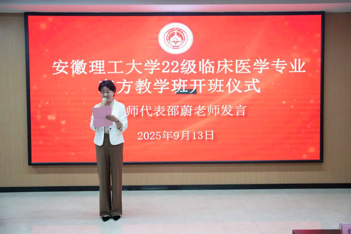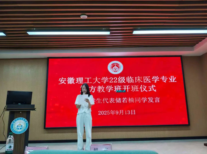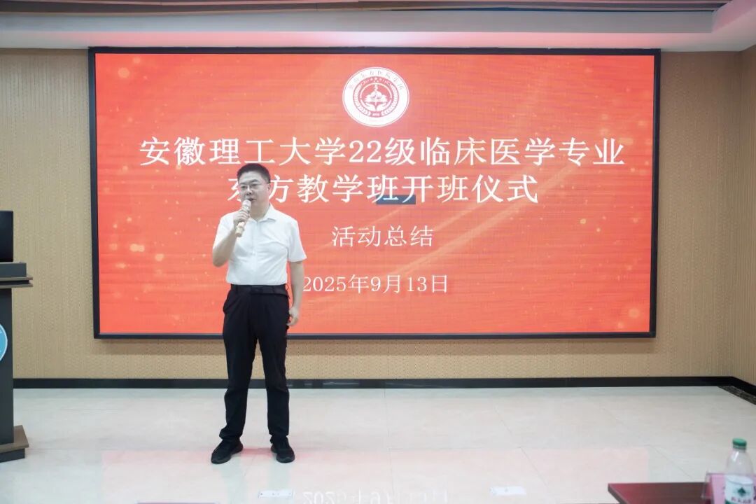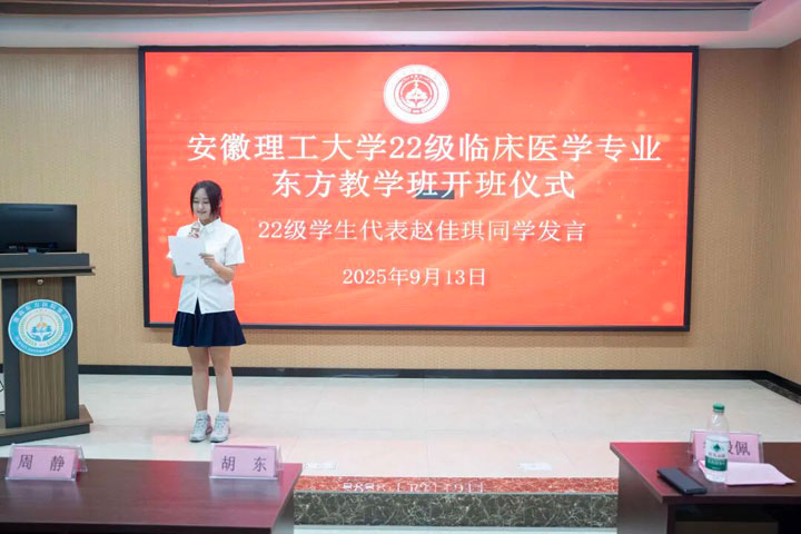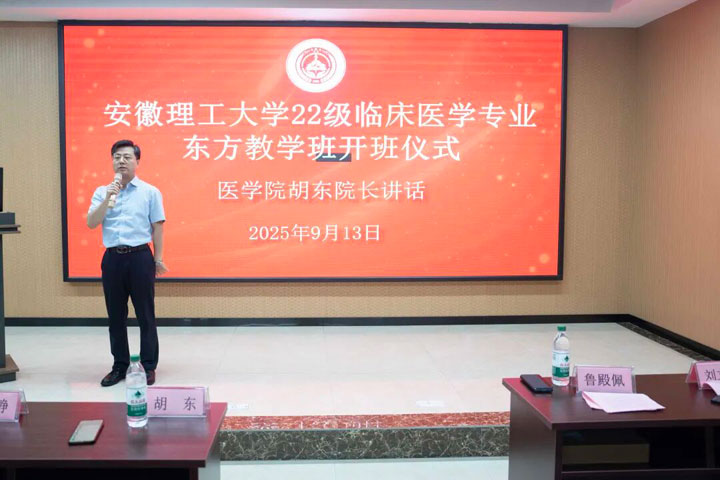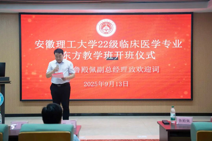 2025年9月13日上午,安徽理工大學(xué)2022級(jí)臨床醫(yī)學(xué)專業(yè)東方教學(xué)班開班儀式在東方總院學(xué)術(shù)報(bào)告廳隆重舉行。安徽理工大學(xué)醫(yī)學(xué)院院長胡東、副書記周靜、副院長田曄,淮南東方醫(yī)院集團(tuán)副總經(jīng)理魯?shù)钆?,東方醫(yī)院集團(tuán)教師代表以及2022級(jí)臨床醫(yī)學(xué)專業(yè)東方教學(xué)班的48名同學(xué)共同參加了這一具有重要意義的活動(dòng)。