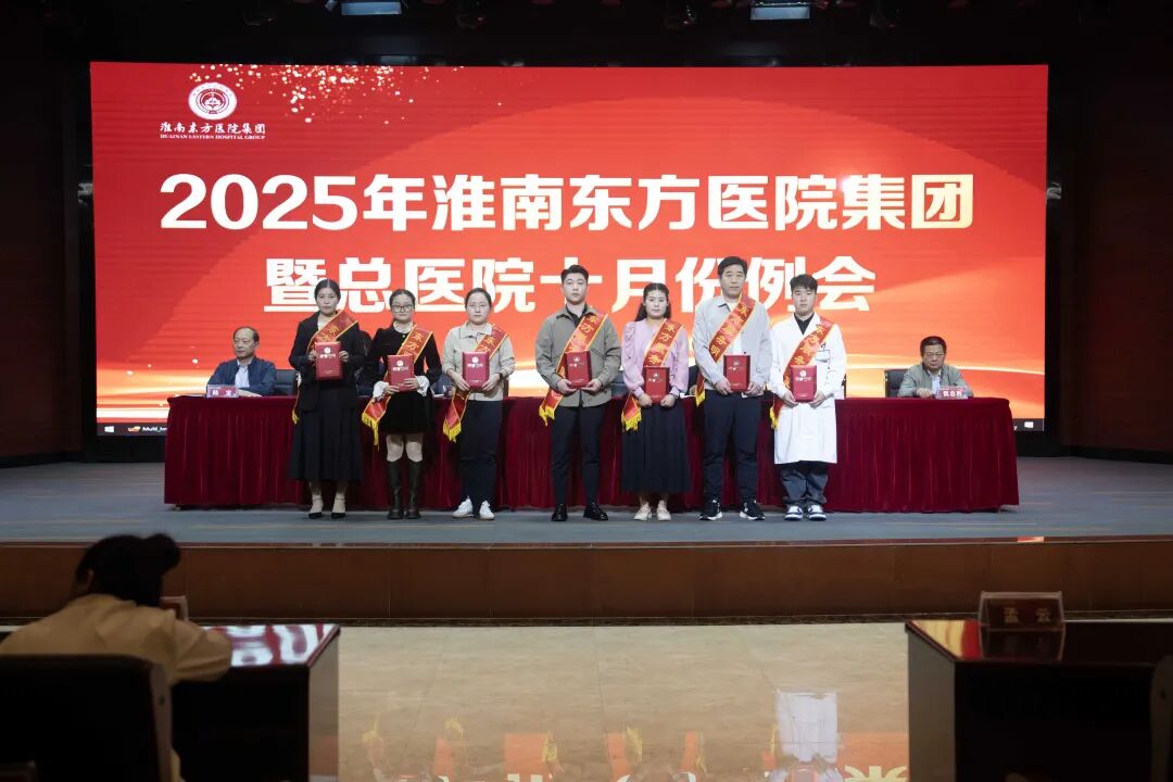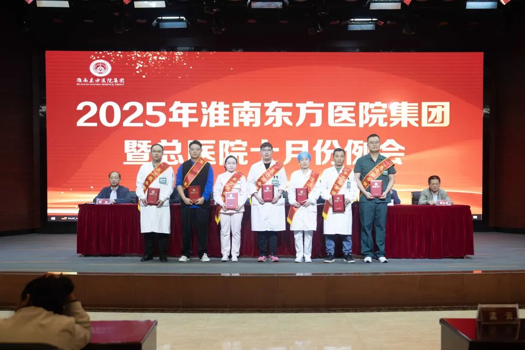 隨后,腫瘤醫(yī)院胡繼年院長(zhǎng)宣讀關(guān)于表彰淮南東方醫(yī)院集團(tuán)2025年第三季度“東方服務(wù)明星”先進(jìn)個(gè)人決定?!稕Q定》授予總院李巖、畢成亞、趙祖芳、劉羅海、張斌斌、管石運(yùn);鳳凰醫(yī)院蘇雨生、陳鵬;腫瘤醫(yī)院王波;廣濟(jì)醫(yī)院楊秀雅、潘凡杰;新莊孜醫(yī)院陳禮超;田東醫(yī)院歐玉青;壽縣濟(jì)民醫(yī)院叢超強(qiáng);謝橋醫(yī)院高亞南共15 位同志“東方服務(wù)明星”榮譽(yù)稱(chēng)號(hào)。希望全集團(tuán)職工要向受表彰先進(jìn)學(xué)習(xí),以群眾滿(mǎn)意為目標(biāo),牢固樹(shù)立服務(wù)和創(chuàng)先爭(zhēng)優(yōu)意識(shí),為集團(tuán)的改革與發(fā)展做出新的更大的貢獻(xiàn)。集團(tuán)領(lǐng)導(dǎo)現(xiàn)場(chǎng)為獲獎(jiǎng)服務(wù)明星進(jìn)行頒獎(jiǎng)。